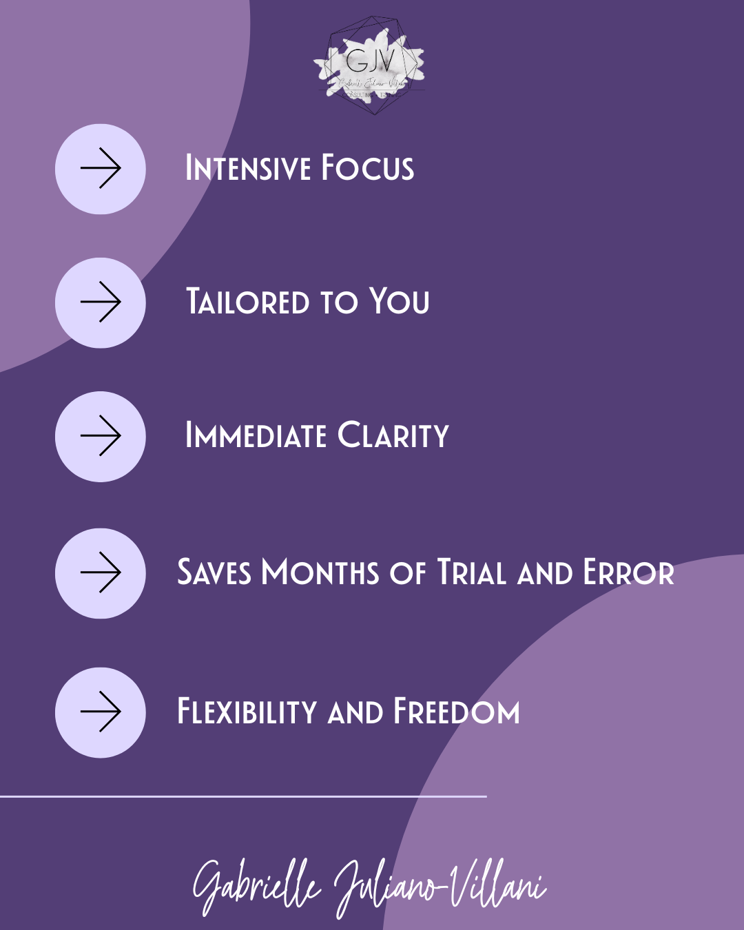Join me for a VIP Day and get a full day of clarity and the focused support you need to move forward.