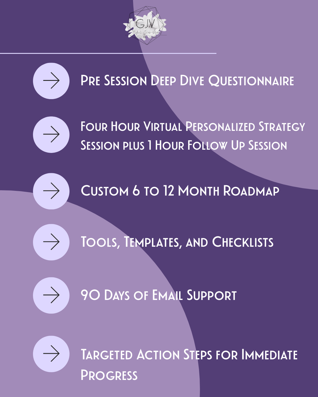 4 Hour Virtual Personalized Strategy Session + 1 Hour Follow Up Session within 30 days